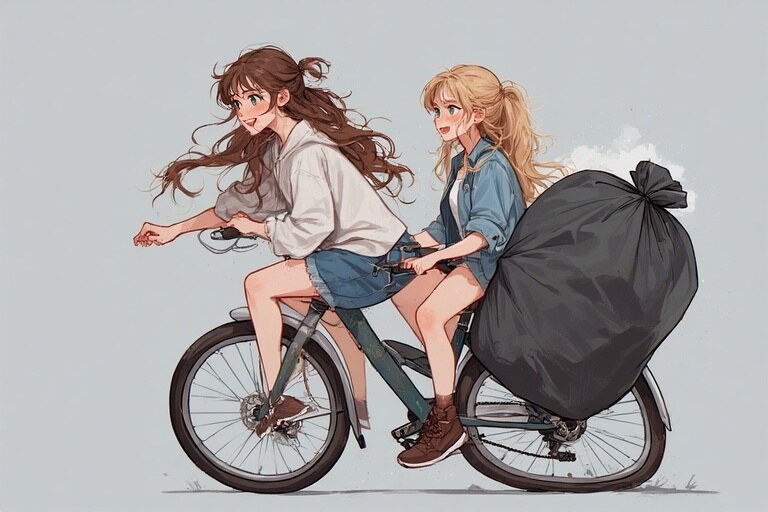 The bike rolled on as if nothing had happened, while she froze in disbelief, staring at the bin slowly disappearing behind them. “Wait stop!” she laughed, tapping her friend’s shoulder. The bike screeched to a halt, and she hopped off, shaking her head in embarrassment and amusement. Clearly, this required strategy.